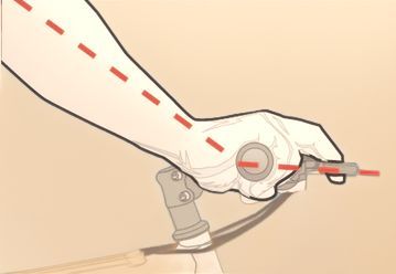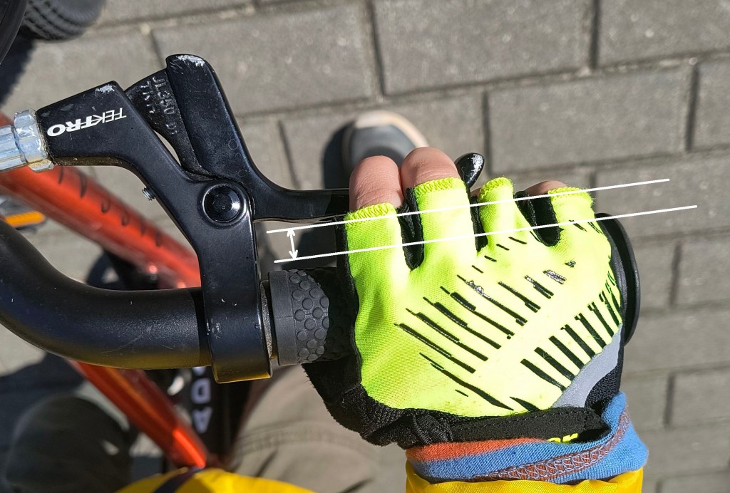Ważnym jest określenie pozycji hamulców na kierownicy. Nie powinny znajdować się zbyt blisko uchwytów ani zbyt daleko. Aby uzyskać optymalną dźwignię, palec powinien spoczywać na zewnętrznym końcu dźwigni i tworzyć prostą linię z dłońmi i przedramionami. Oznacza to, że klamkę należy przesunąć bliżej środka kierownicy, tak aby dziecko mogło łatwo objąć grip 2–3 palcami, a jedynie palec wskazujący lub wskazujący i środkowy był odpowiedzialny za hamowanie.